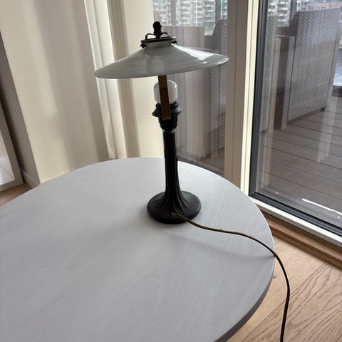 Antik Vintage bordlampe med rød glas og metal. Lampen har en unik design med en kombination af rød glas og messingfarvet metal. Velegnet til brug som dekorativ belysning i stuen eller soveværelset.