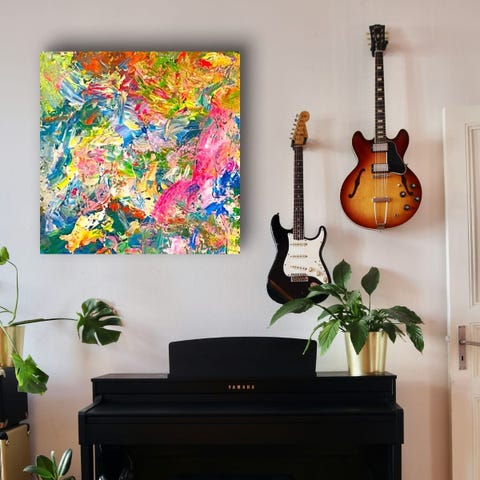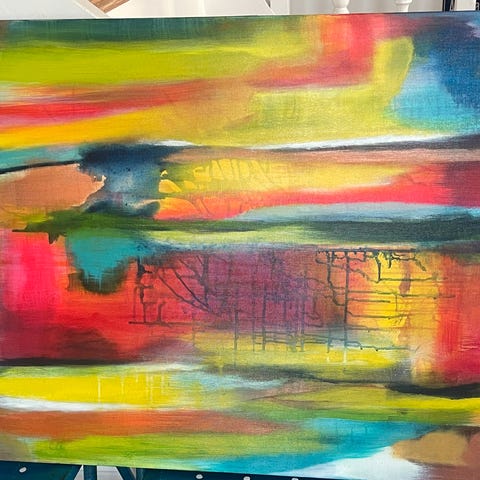Abstrakt Kunstmaleri Farverig Komposition 52 x 66 cm