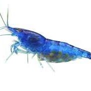 Blå rejer. Der går ikke andre farver rejer i akvariet, så alt yngel der kommer er blå.