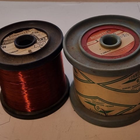 Kobbertråd, 0,224mm , 100m vejer 0,033kg, der er 6kg, dvs ca 18000m