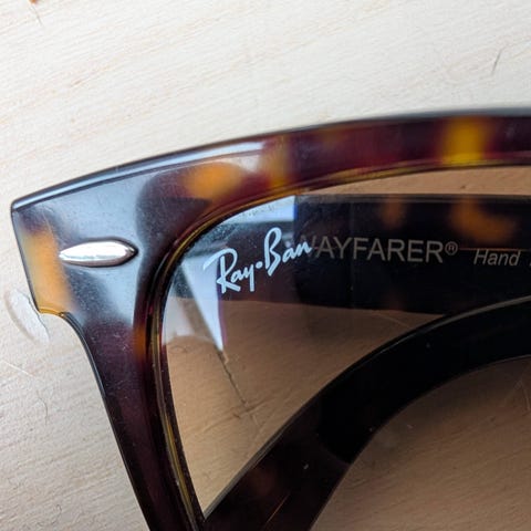 Et par fine brugbare solbriller. Stellet har lidt ridser. Glasset har mindre ridser. Den ene brillestang hænger lidt men ikke når de er på.