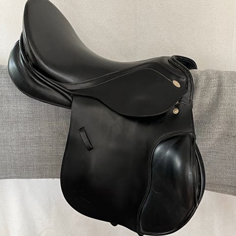 En rigtig god springsadel med meget støtte til rytteren, Lægstøtten er justerbar med velcro. Bredt kammer.