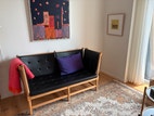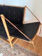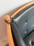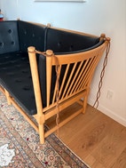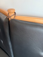 Velholdt tremmesofa i lakeret bøg med vendbare sorte læderhynder i god kvalitet. Sofaen har haft ophold i ekstra stue og er blevet benyttet sjældent. Sælges grundet ommøblering da sofaen fortjener at blive brugt. Købt for ca 20 år siden. Fra dyr - og røgfrit hjem. GIV GERNE ET BUD🤗