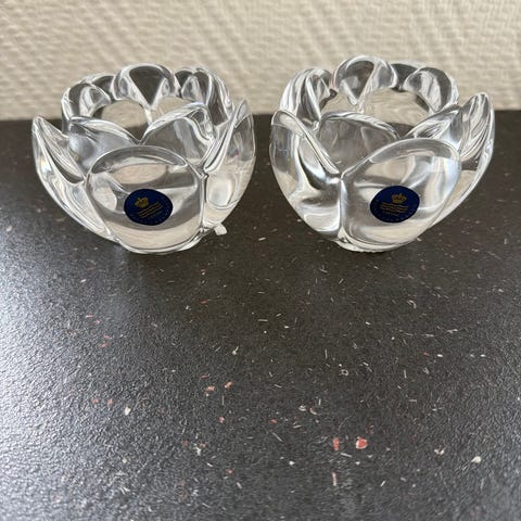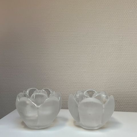 Royal Copenhagen, dansk desgign Torben Jørgensen. Fyrfadslysestager i glas - frostet glas på ydersiden. (bitte småfejl i glas, ikke skader, ses slet ikke når de står, se 2 sidste fotos...) 75 kr.