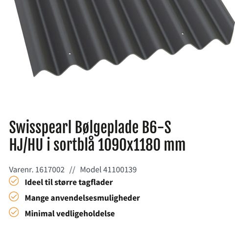 B6S mørkegrå, Swisspearl, b: 1090 l: 1180, Bølgeplade mørkegrå B6S