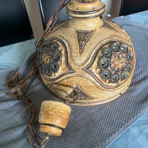 Keamik , Lerlampe , Brændt Ler , 70'er Lampe , Loftlampe , 70 , 1970'erne , 1970 .Vintage , Hippie , Hipie , Hipi , Hippi ,