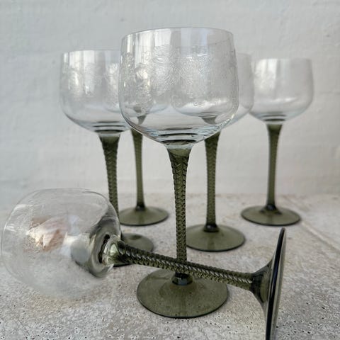 5 fine farvede vinglas og 6 portvinsglas i forskellige farver. Bøhmisk krystal. Prisen er for alle 11 glas.