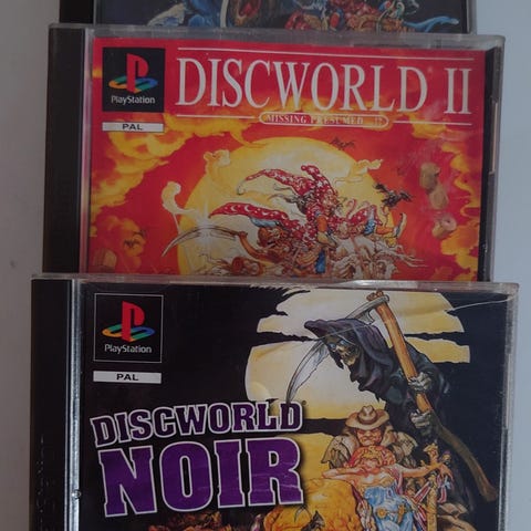 DiscWorld Noir, PS, action, Discworld Noir til Playstation i fin stand, kassetten er dog beskadiget i det ene hjørne. Se fotos. Odense. Ingen dørhandel.