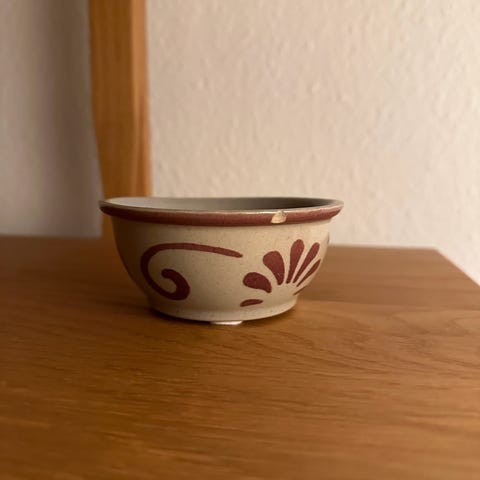 Små ujævnheder i kanten, se foto, men slet ingen ridser i bunden (som de ellers ofte har).