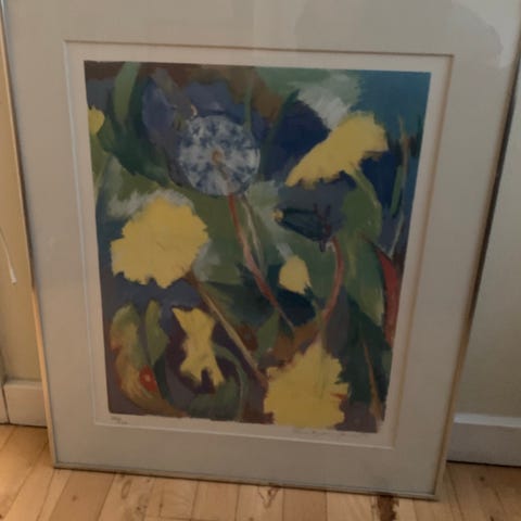 Litografi. Mælkebøtter af Finn Hjortskov Jensen. Signeret 1989