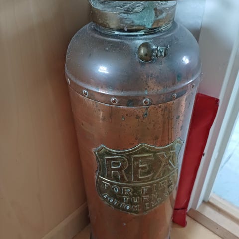 Gl. Brandslukker, kobber. Højde 55 cm.