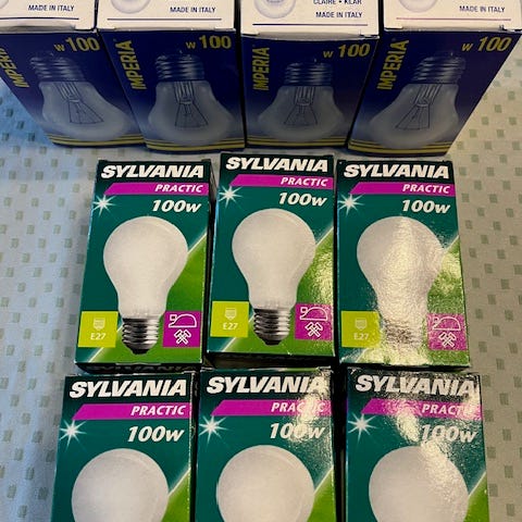 Pære 7 stk. (måske gamle diskotek pære??) 1 stk. 120 watt - 6 stk. 150 watt 230 volt E27 fatning - 50 kr stk. byd