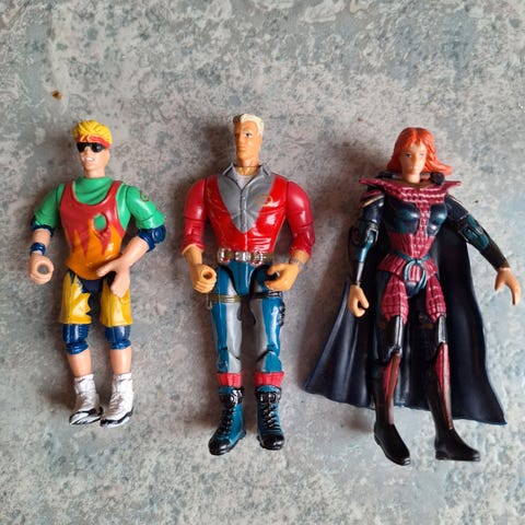Johnny Quest Hadji cyber suit med Johnny Quest figur fra mærket "Galoob". Har få brugspor, men er udover det I pæn stand.