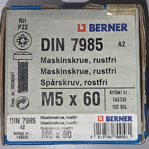 Rustfri maskinskrue, M6x50 Torx Din7985,