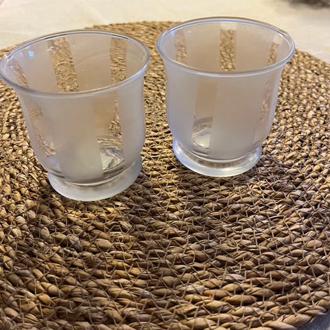 Flot "sølv" fattigmandslysestage, i mundblæst glas.