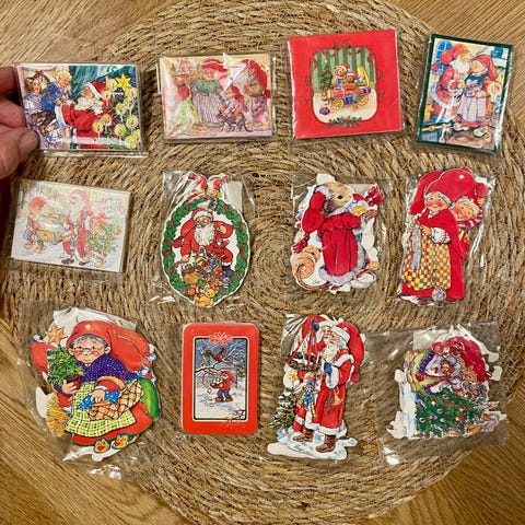 Samlekort, Gavemærker, Dobbelte, med hul og cirka 7x9,5 cm. Hjemmelavede.