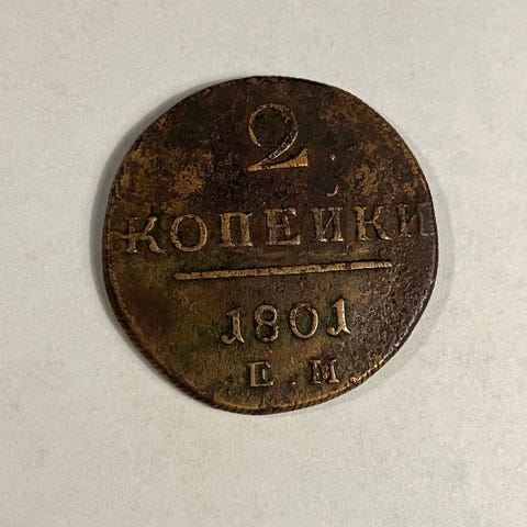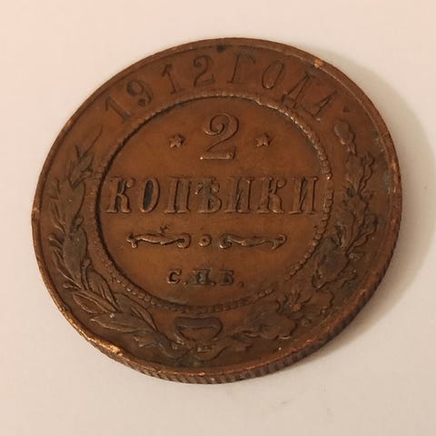 Gammel 1 Kopek fra 1842. Russisk Empire
