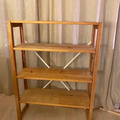 Reolen har synlige brugsspor og alderstegn, men er pæn og fuldt funktionel.