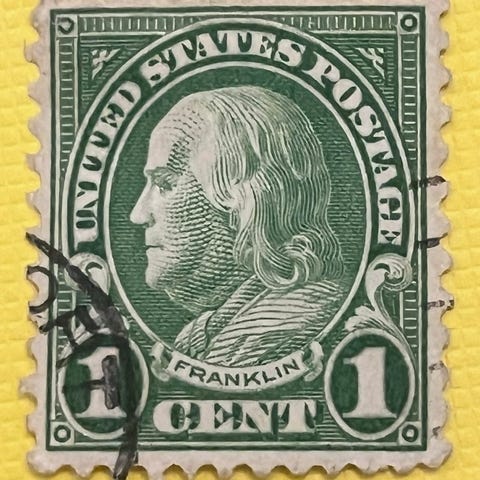 USA, stemplet, Benjamin Franklin 1-Cent