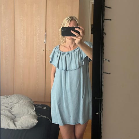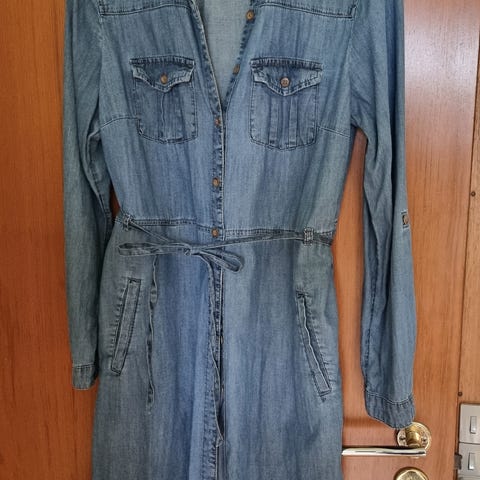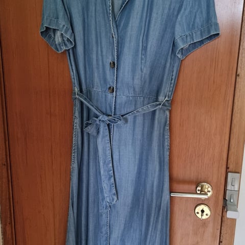 Blød sommer skjortekjole. Lommer for og bag. Bindebånd bagpå.