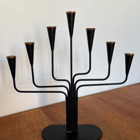 Fin sort lysestage, til julelys. Formentlig noget svensk tenn, ystad metal, Gunnar Andersen.