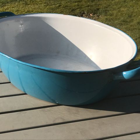 Stort ovalt sølv ligende fad med håndtag.