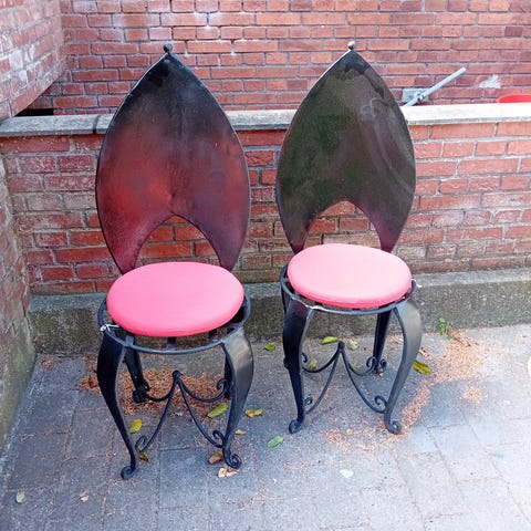 2 stk. jern stol. En grøn og blå for begge stole 600.- et stk. 350.-