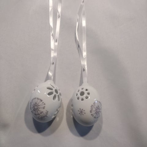hvid med mønster og hulmønster, 2 delt, hvid, porcelæn, H: 12 cm, HELT INTAKT, sender gerne, dog ikke med fiks færdig, porto oveni