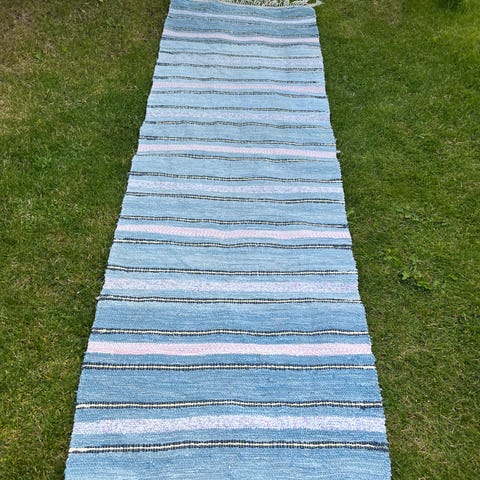 Flot svensk kludetæppe i en lang udgave 360cm.
