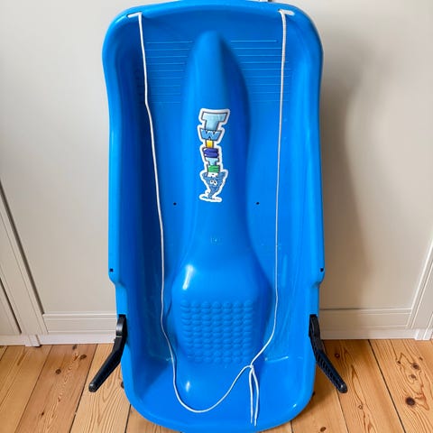 Brugt kælk sælges da børnene er blevet liiiiiige en snas for store til den.