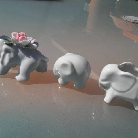 2 små porcelænselefanter. Højde: 13,5 cm. Bredde: 15 cm.