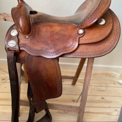 Helt ny Adam ellis sadel mono 17,5 m/w sælges. Der er star dust på bagvidsel, begge side klapper, pipe i fronten, kalve læder i sædet og knæstøtter.