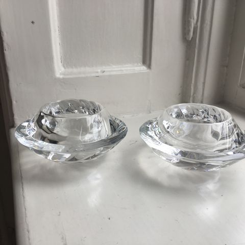 Glas, 2 stk.lysestager, Capriole, Royal Copenhagen, design Sidse Werner, var i produktion fra 1987 til 1992