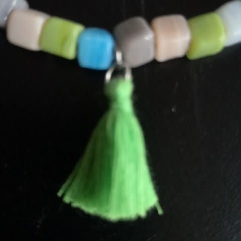 Helt ny, flot halskæde af firekantede perler i keramik med vedhæng i messing eller med nøgle. Kombination af fem farver: støvet rosa, grå, hvid, grønt og turkis.