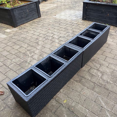 Vandingskasser til potteplanter i aluminium. Skal dine planter stå alene i et stykke tid, så sæt dem i denne alu kasse. Billigere end zink og ligeså holdbar.