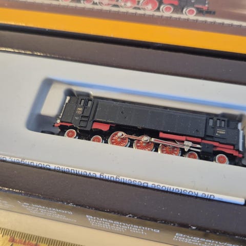 Sjælden jubilæumsmodel fra Märklin, udgivet i 1982 for at fejre 10-året for Mini-Club (Z-skala). Dette er den ikoniske Schienenzeppelin (model 8876), designet af Kruckenberg. Modellen er udført i metal og er i absolut perfekt stand. Den kommer i sin originale præsentationsæske. Yder-omslaget af pap har lidt hyldeslid, men selve æsken og modellen er som nye. Et flot samlerobjekt for entusiasten.
