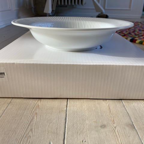 Sælger min hvid riflede Royal Copenhagen pastatallerken. Kan også bruges som skåle/fade.