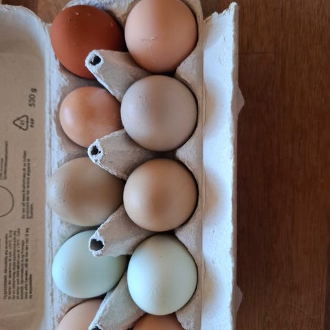 Vi har Hvid italiener,Brun Lohmann, Grunlægger,Farverolls,arucana,Maran,Gul Orpington ,New hamshire ,Isa Warren .