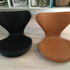 Arne Jacobsens 3107 stole.Ny polstret i varm cognac Brandy læder.Har en rigtig flot glødFåes på almindelige krom stel og sorte stel.Står stort set som nye. Nyt skum og læder og pudsede stelGaranti for at stolene er uden reparationer i ryggen og der gives to års garanti på polstrinPrisen er pr stkSE DEN I VORES SHOWROOM I ESBJERG STORCENTERADD : GL VARDEVEJ 230 6715 ESBJERGÅBENT HVER TORSDAG FRA KL 14 -17.30Se vores hjemmeside for andre møblerhttps://www.design-classic.dk/Vi leverer til kantsten. Vi kan i særlige tilfælde tilbyde op bæring mod ekstra betalingMvh Kirsten og Bo