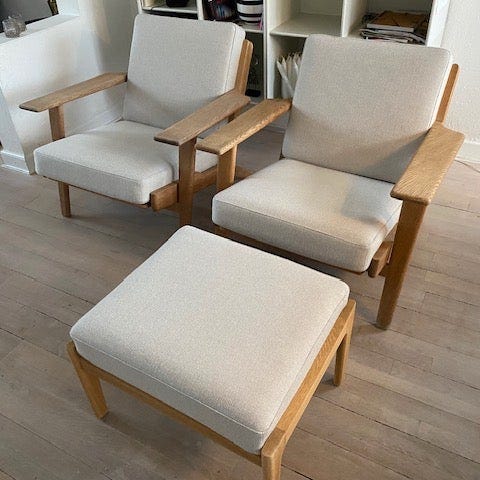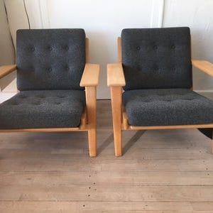 Wegners Ge 290 stole.Model Ge 290/1Stolene står stort set som nye.Med de originale springhynder som er efterset og efterspændt i fjedre.Det originale brænde mærke fra Getama er under bunden.De er begge polstret i Koks grå CamirauldDer kan mod en mer pris tilkøbes en skammel for 5900 KrPrisen er for en stolSE DEN I VORES SHOWROOM I ESBJERG STORCENTERADD : GL VARDEVEJ 230 6715 ESBJERGÅBENT HVER TORSDAG FRA KL 14 -17.30Se vores hjemmeside for andre møblerhttps://www.design-classic.dk/Vi leverer til kantsten. Vi kan i særlige tilfælde tilbyde op bæring mod ekstra betalingMvh Kirsten og Bo