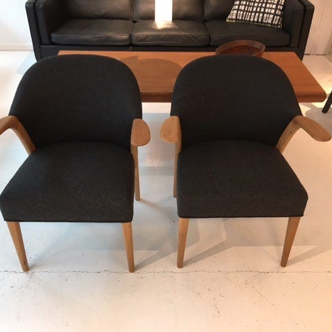 Super flot par Kurt Olsen stole.Stolene er i ny slebet eg og ny polstret ikoks grå Camira uldStolene står stort set som nyeLavet af Slagelse møbel værkSE DEN I VORES SHOWROOM I ESBJERG STORCENTERADD : GL VARDEVEJ 230 6715 ESBJERGÅBENT HVER TORSDAG FRA KL 14 -17.30Se vores hjemmeside for andre møblerhttps://www.design-classic.dk/Vi leverer til kantsten. Vi kan i særlige tilfælde tilbyde op bæring mod ekstra betalingMvh Kirsten og Bo