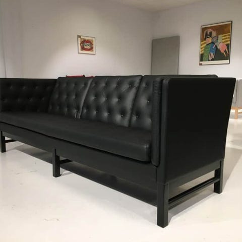 Flot ny polstret Erik Jørgensens sofaModel 220 med en længde på 212 cmDen store modelSofaen er ny polstret i sort Italiens Marchettolæder, ogkommer med stålbenSE DEN I VORES SHOWROOM I ESBJERG STORCENTERADD : GL VARDEVEJ 230 6715 ESBJERGÅBENT HVER TORSDAG FRA KL 14 -17.30Se vores hjemmeside for andre møblerhttps://www.design-classic.dk/Vi leverer til kantsten. Vi kan i særlige tilfælde tilbyde op bæring mod ekstra betalingMvh Kirsten og Bo