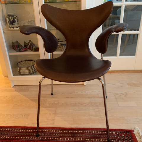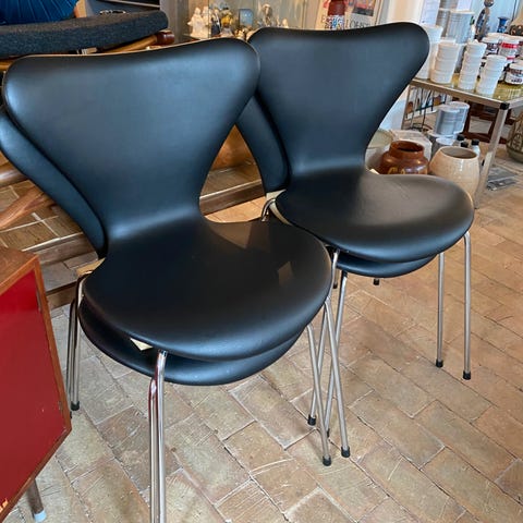 Der er seks stole.Ny polstret i sort Classic soft semianilin læderStolene er med minimal brugsslitage på stelLiljerne er af den gamle modelPrisen er pr stkSE DEN I VORES SHOWROOM I ESBJERG STORCENTERADD : GL VARDEVEJ 230 6715 ESBJERGÅBENT HVER TORSDAG FRA KL 14 -17.30