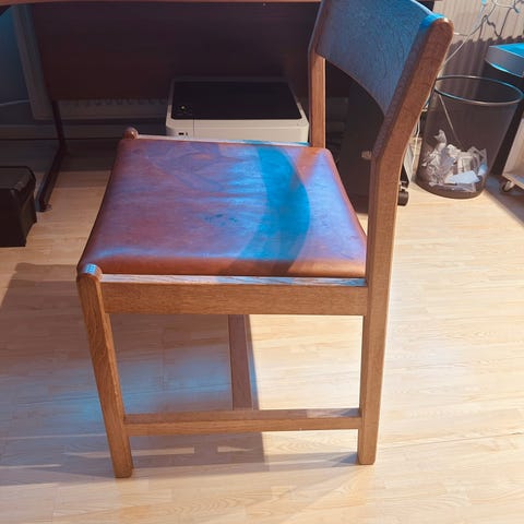 Skamlen er ny polstret i Italiensk Marchetto cognac læderaf professionel møbel polster, og med nypudsede ben af professionel snedkerStår som ny
