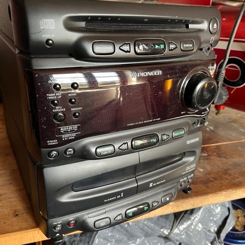 Har dette her rimelige fine mini anlæg til salg det spiller rigtigt godt. Det er et jeg har fået som defekt men jeg har fået gang i det igen. Jeg har renset læser og så har jeg lavet den lille gear kasse til lået så det kan åbne igen men den er lidt tung at åbne så den skal har lidt hjælp men ellers spiller der bare der ud af. Det er aux indgang på det så man kan tilslutte div til det. Det er med fjernbetjening og højtaler. Standen er rimelig men har da lidt brugs spor se billeder