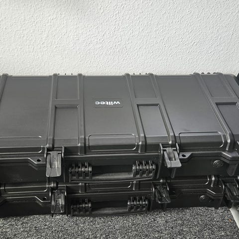 Gun case/våbenkuffert/geværkuffert betrukket med lys brun læder.