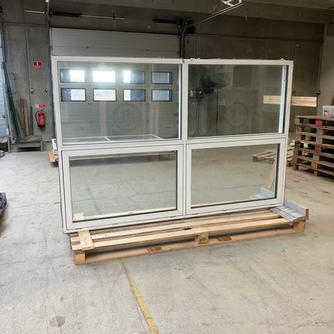 Fastkarmsvindue 99x205,5 cm i træ/alu med 3-lags energirude. Produceret af Kastrup Vinduet. Hvid indvendigt og lys grå udvendigt. Dimension B:99 X H:205,5 X D:14 cm. Fås i terrassedørs version art.nr. 1306. Se evt. også: https://kingogenbrug.biz/vare/fastkarm-vindue-878x2098mm/