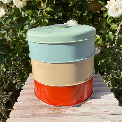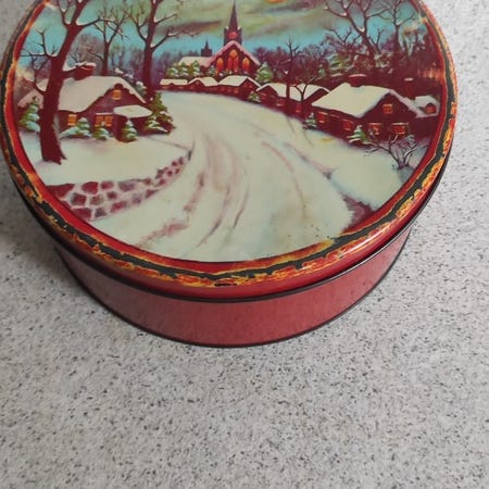 Smukke klassiske kagedåser fra Nürnberg. Mange smukke detaljer i klassiske og gyldne farver (blå, rød/brun og hvid, se fotos). Er alle i god stand, enkelte brugsspor og en smule patina. Perfekt og unik udsmykning i køkkenet. 30kr/stk, 6 stks 145,-