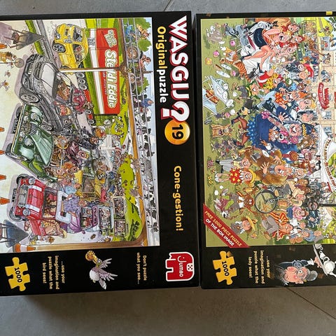 Jumbo Wasgij? 6 puslespil med 1000 brikker. Komplet.