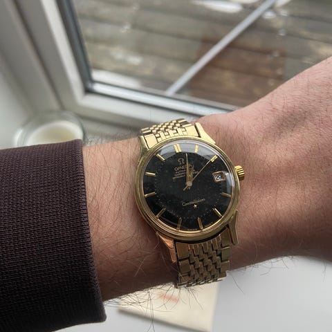 sælger mit vintage omega constellation, fuld af charme og historie.
